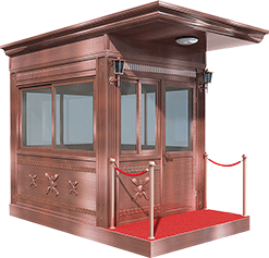 鋼結構崗亭工藝 1、鋼結構崗亭主體:支撐柱及框架采用100*100*3.0mm厚的優質型鋼結構焊接而成、強度高、抗風壓、美觀; 2、鋼結構崗亭頂部:造型采用1.